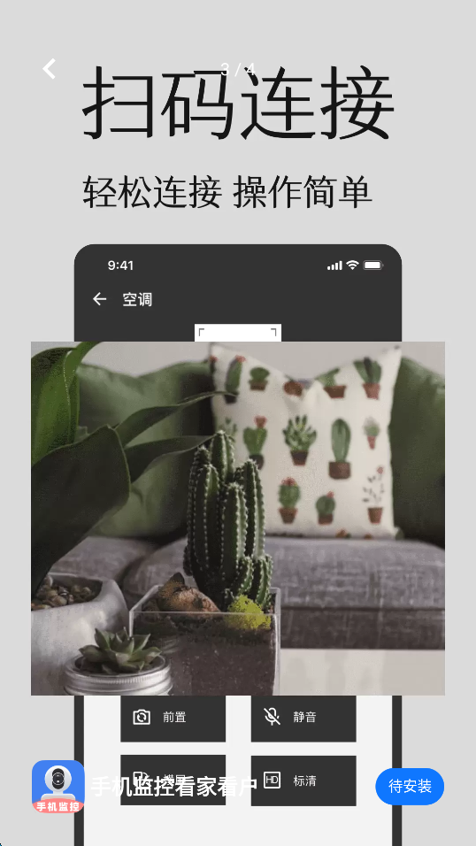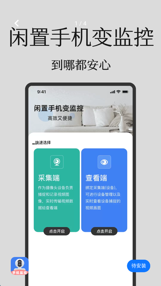 2、进入app首页,依照引导开启监控功能,主设备打开对应界面,一键扫码完成快速绑定。