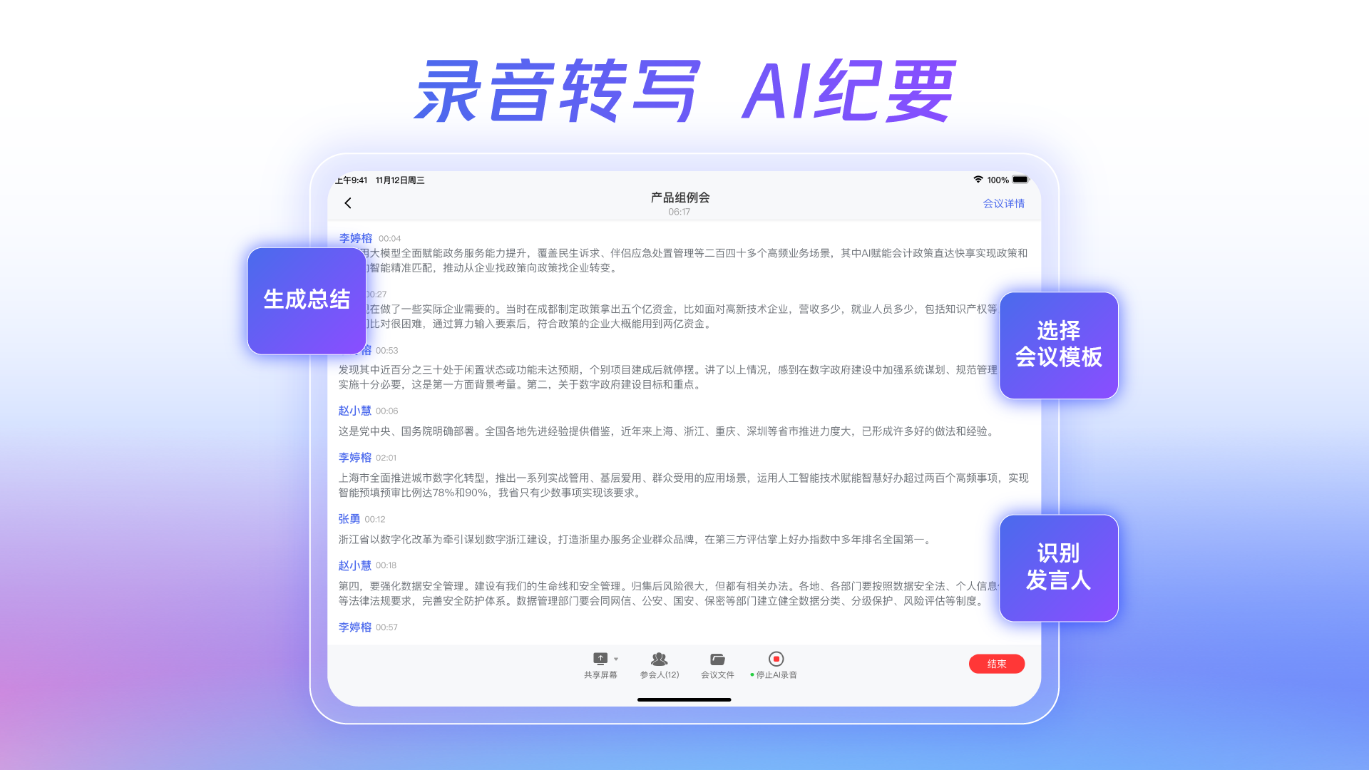3、运用先进的语音识别技术,实时转换发言内容为文字记录,进一步提高会议记录的准确性和完整性。