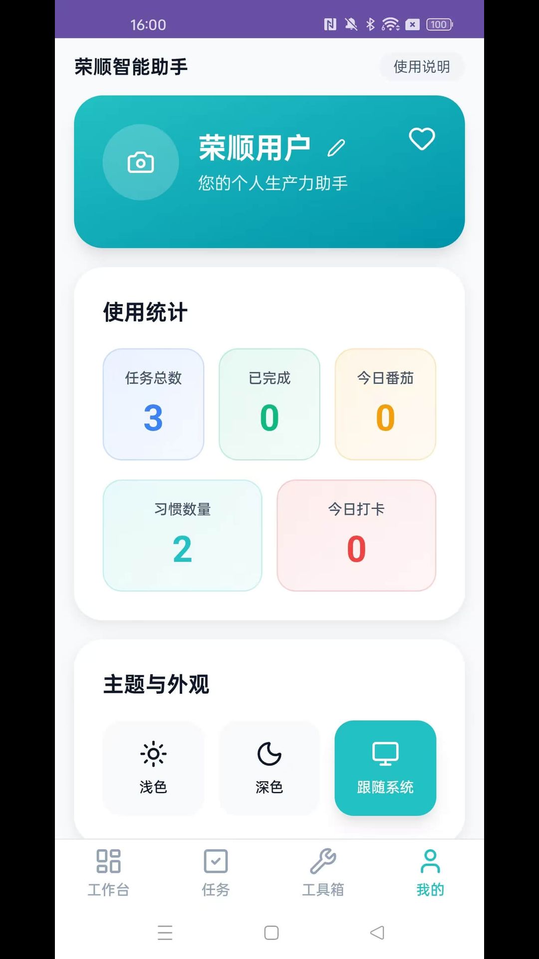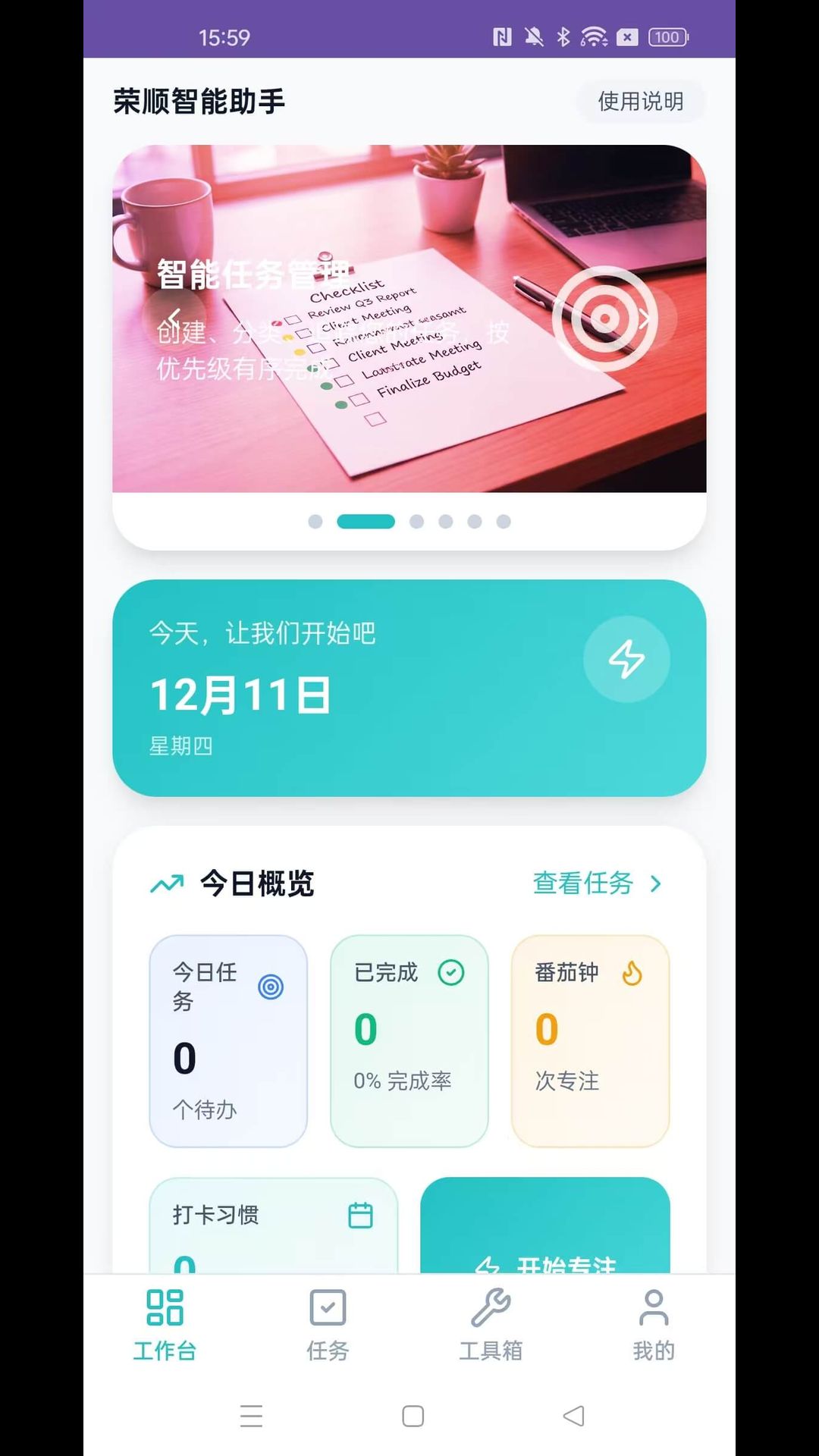 荣顺能助手app是一款帮助你提升自己专注力的应用,不管是日常的工作还是学习中都可以去使用,平台提供了多种不同的功能,随时可以在线添加自己的待办事项,自动进行提醒,让你不会忘记应该做的事情,同时还会自动的统计每天的完成情况,帮助你养成良好的工作、学习习惯。