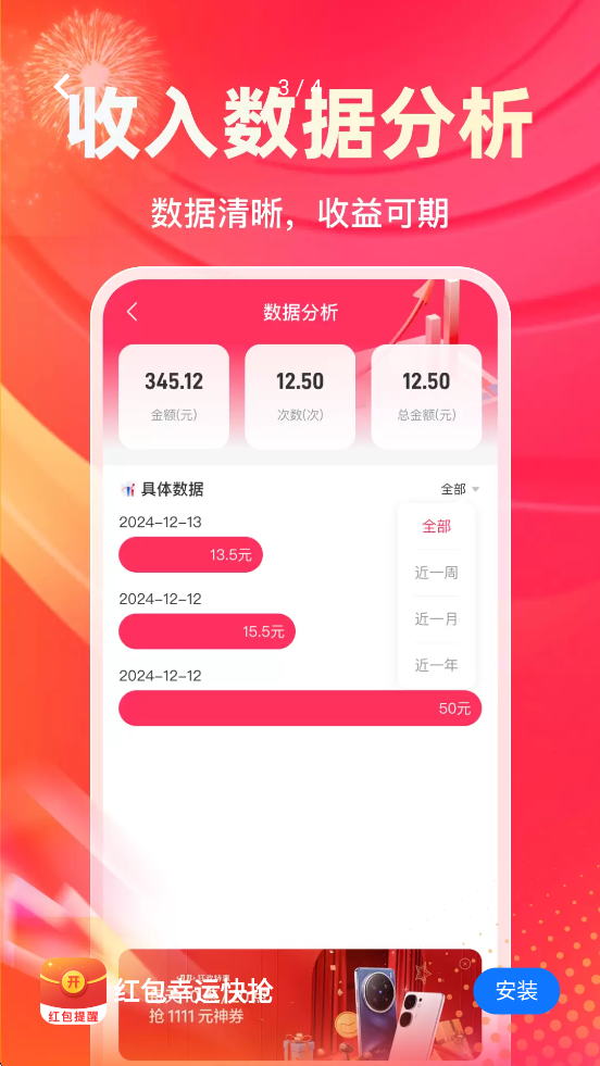 3、按照时间、来源等维度分类展示,方便您随时回顾和统计自己的抢红包成果。