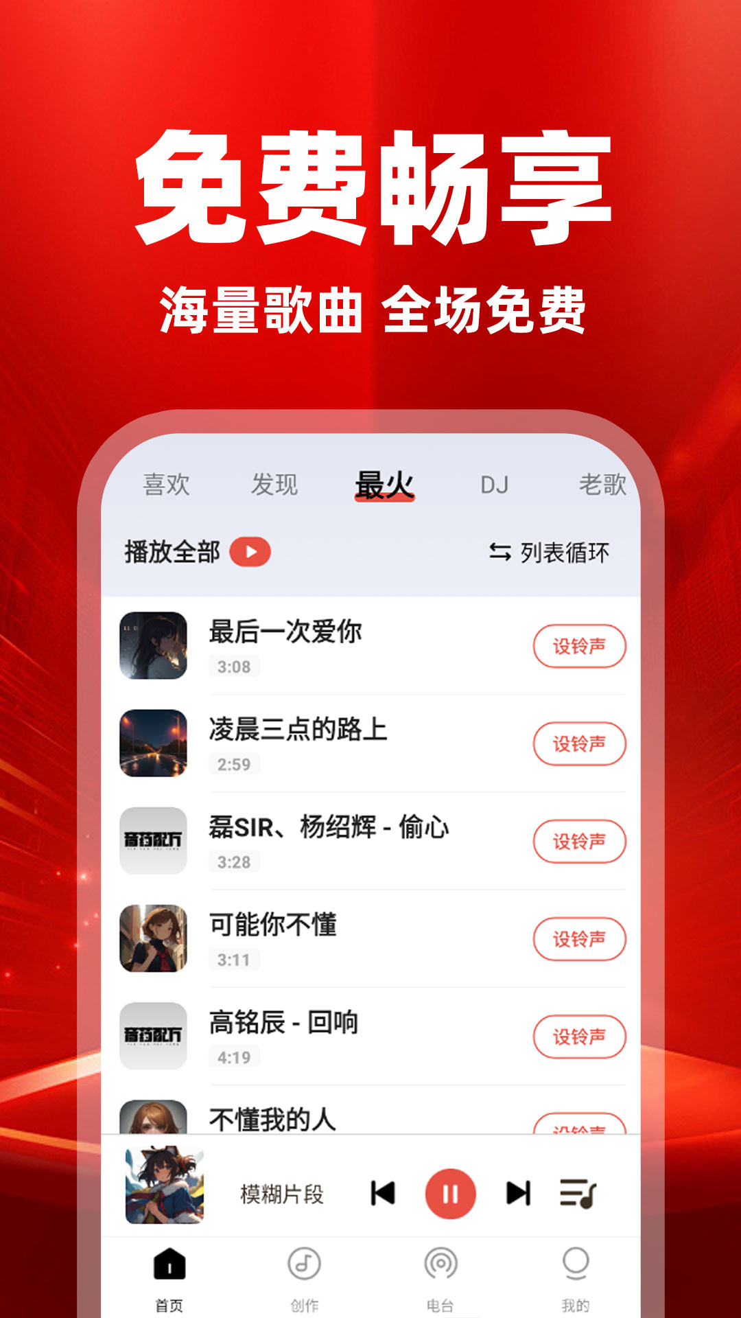 1、免费畅听无门槛,无需付费,无需会员,所有音乐资源均免费开放,让你尽情享受音乐的纯粹与美好。