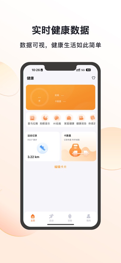3、所有健康与运动数据均在APP中以卡片、列表、环形图等直观形式清晰展示。