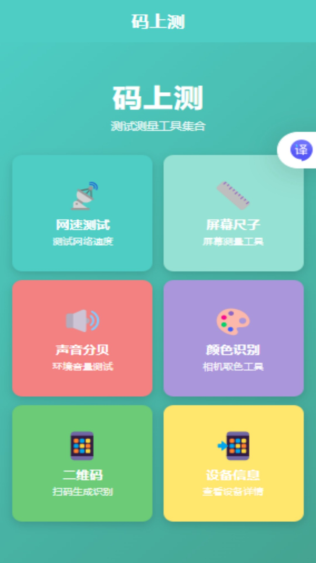 码上测app是一款集多功能专业测试测量神器,融合了网速测试、屏幕尺子、声音分贝检测以及颜色识别等众多实用工具,如一个随身携带的精密测量箱,无论你是在办公场景中需要精确校准尺寸,还是在日常生活中想要监测环境噪音,亦或是检测网络速度、识别物体色值,码上测都能迅速响应,以一站式服务满足您多样化的测量需求。
