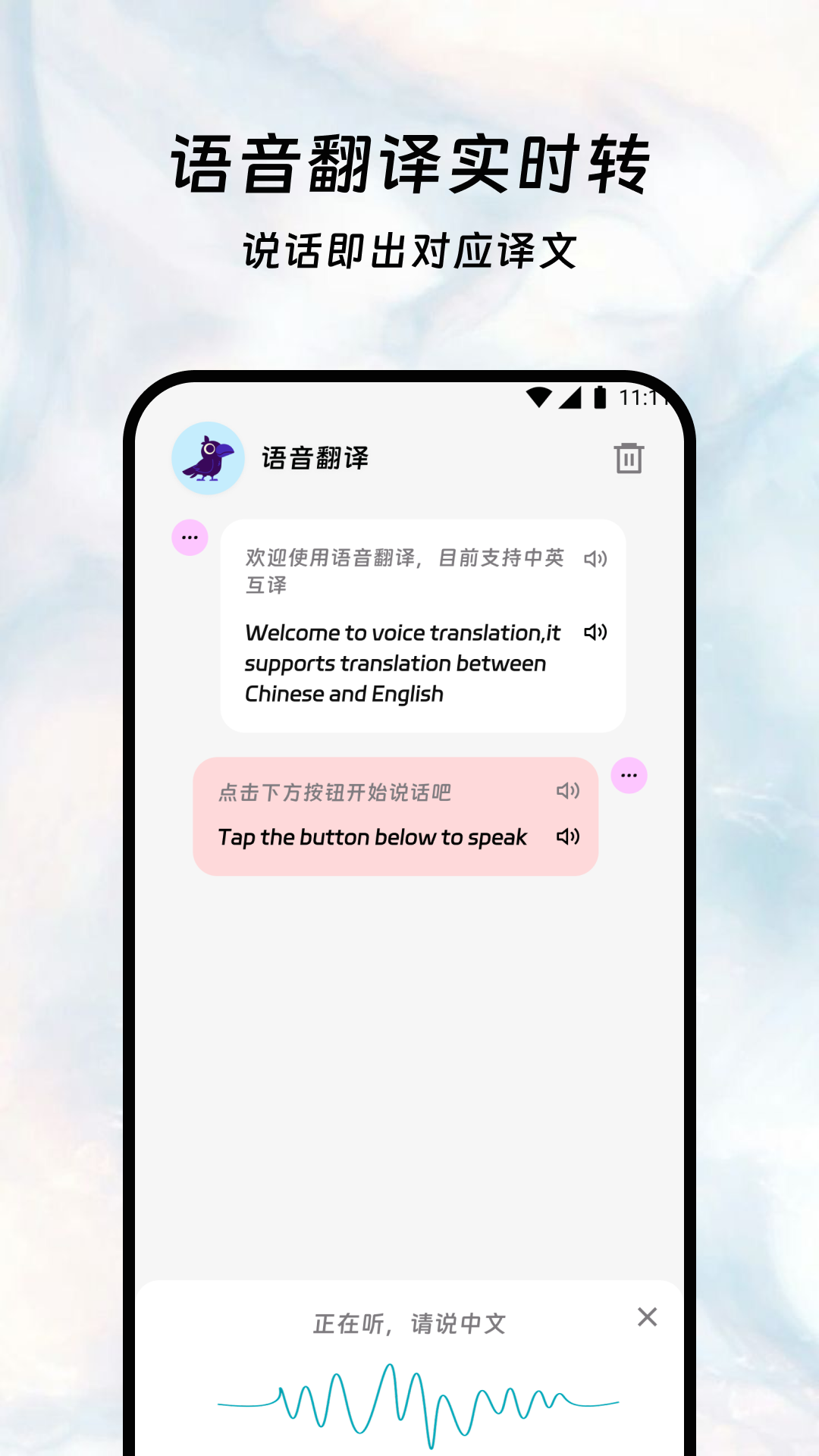 2、语音翻译功能非常便捷,用户只需说话,应用即可实时转换为对应译文。