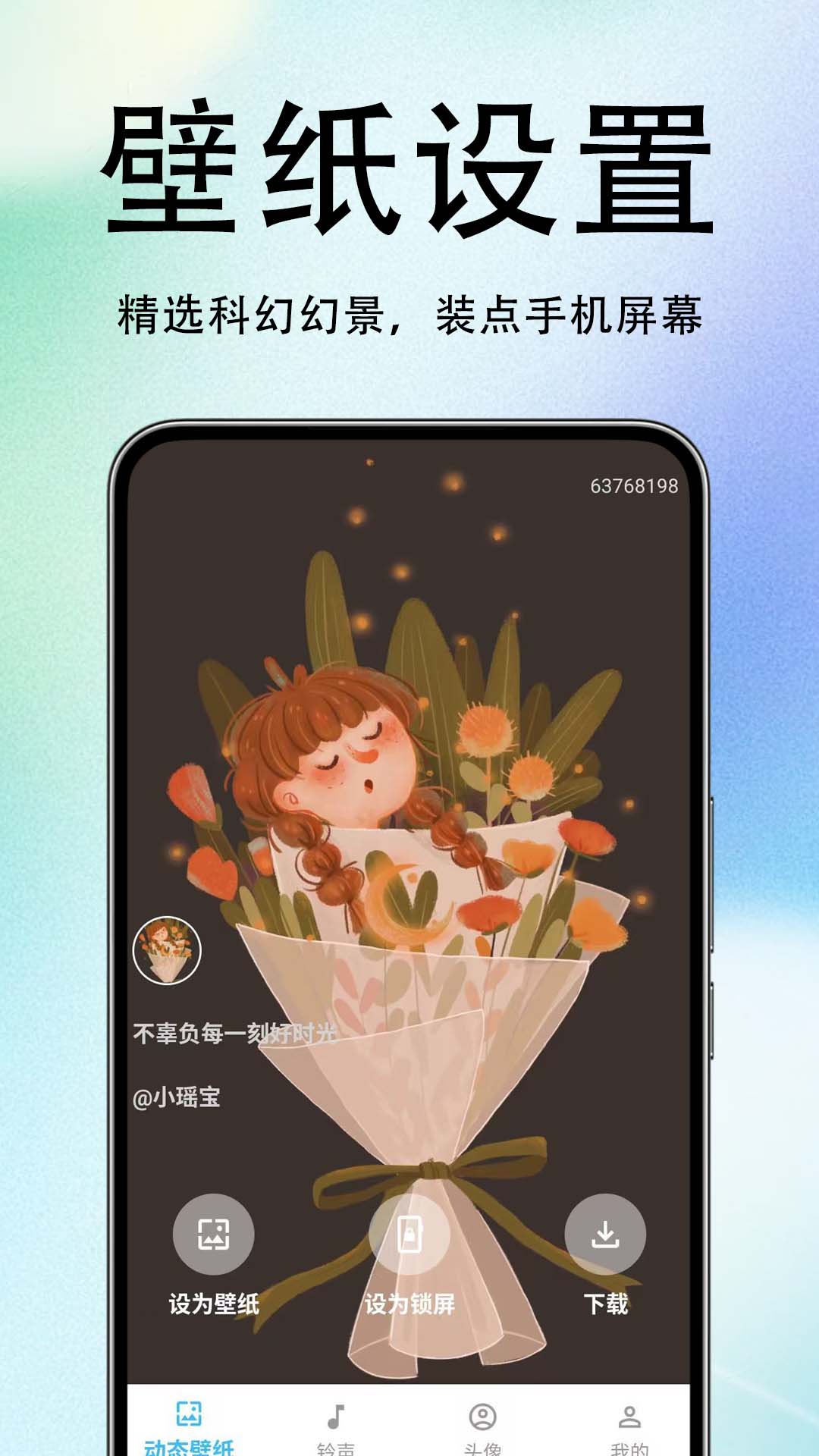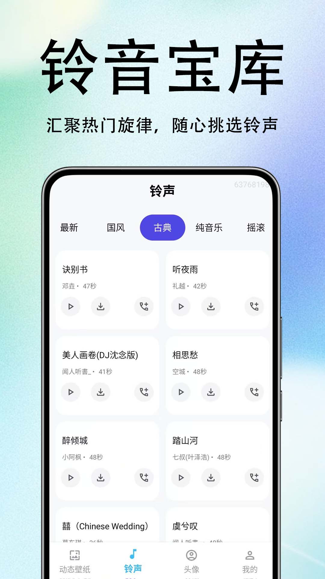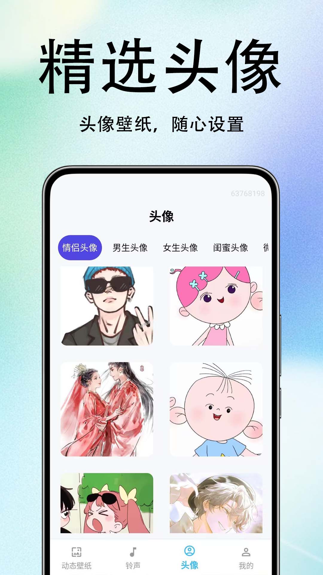 2、它不仅提供丰富的壁纸资源,还支持本地铃声和头像管理,让用户的手机设置更加有趣。