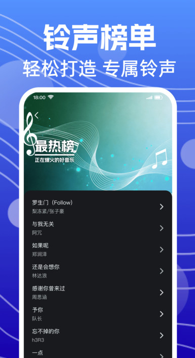 来电铃声全免费app是一款备受欢迎的铃声应用,热门铃声,经典铃声应有尽有,用户可以快速在铃声搜索栏输入你想要的铃声关键字,系统将会快速为你匹配对应的铃声,找到了铃声用户就可以及时在线点击试听,还可以随时给你的手机更换铃声,不同的铃声将会让你拥有不同的心情,你也可以根据提供的铃声素材来这制作独特的铃声,任你及时在线体验。