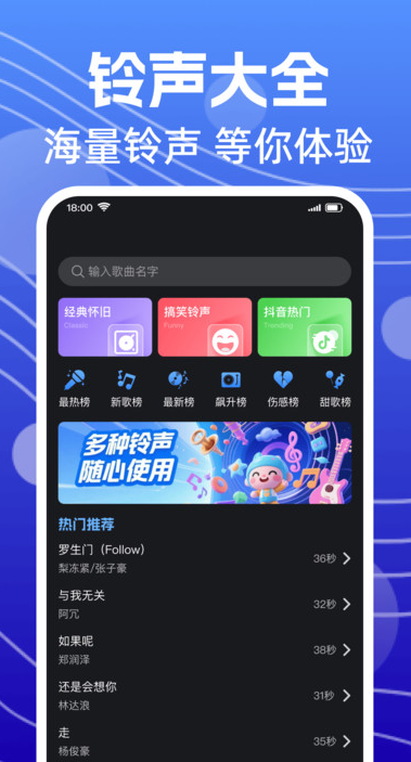 2、平台汇集海量热门铃声与经典铃声,形成全面的资源矩阵,热门铃声实时跟进潮流趋势。