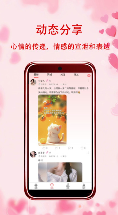 4、无论是想拓展社交圈、寻找兴趣同好,还是期待邂逅真挚的情感,用户都能在这里找到适合自己的交友方式。
