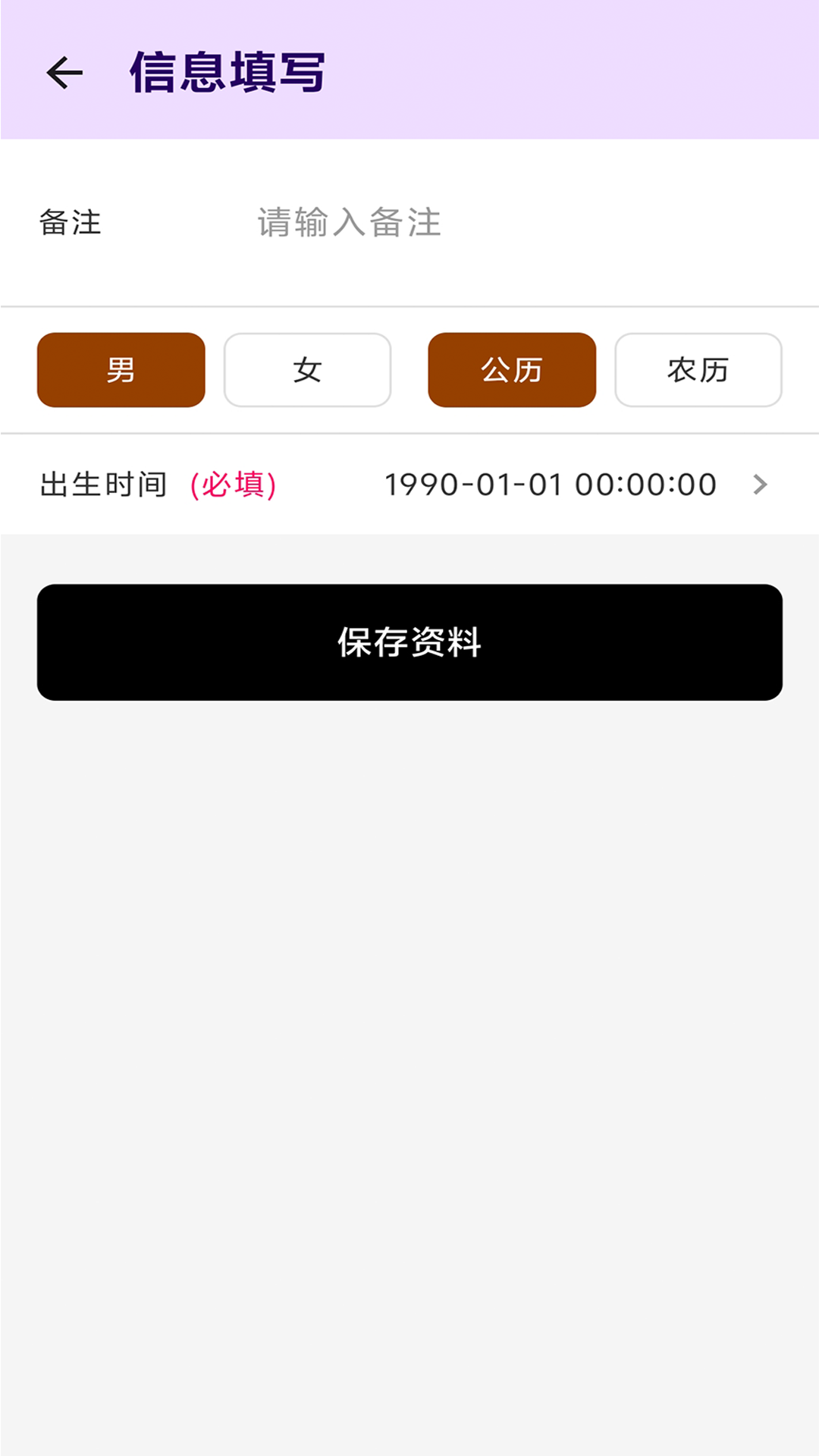3、输入个人基本信息,如出生年月日时等关键数据,为精准测算奠定坚实基础。