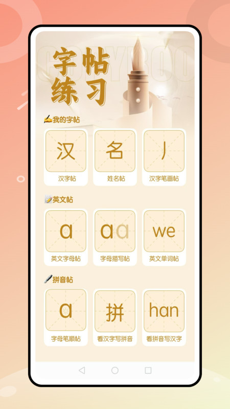 3、同时覆盖软笔(毛笔)与硬笔(钢笔、铅笔)书法练习体系,满足不同书写工具爱好者的个性化学习需求。