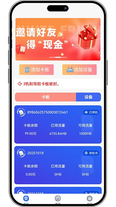 3、用户可以轻松管理自己的手机、平板、路由器等设备,以及与之关联的SIM卡或流量卡。