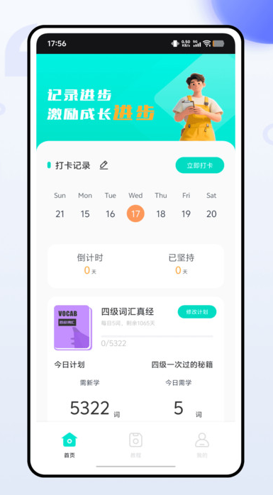3、计划生成后自动同步至学习主页,清晰展示每日任务与整体进度,帮助用户建立规律的学习习惯。