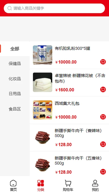 1、 用户可像在普通电商平台一样,浏览、搜索、购买分类清晰的新疆特产,并完成在线支付与物流跟踪。