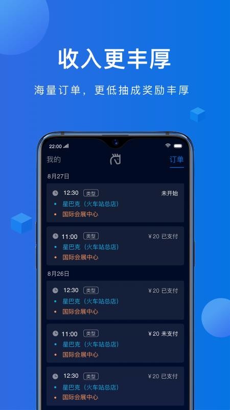 1、作为专为司机打造的接单平台,APP依托成熟的出行服务体系,汇聚海量网约车订单,覆盖日常通勤、跨城出行、机场接送等多种场景。