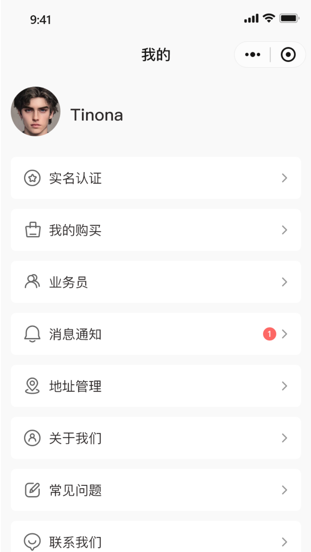 4、来到软件我的页面,可使用实名认证、消息通知、常见问题等功能。