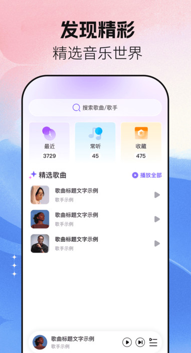 音乐大全免费听app是一款最新上线的音乐播放软件,热门好听的音乐将会随时上架,喜欢听音乐的用户可以更轻松更快速找到合适的音乐,支持一键点击播放,在线播放音质清晰,播放流畅,遇到了喜欢的音乐还可以及时收藏,方便日后不需要再次搜索也是可以轻松在线听,无论是新用户还是老用户都是可以享受免费在线听音乐哦。
