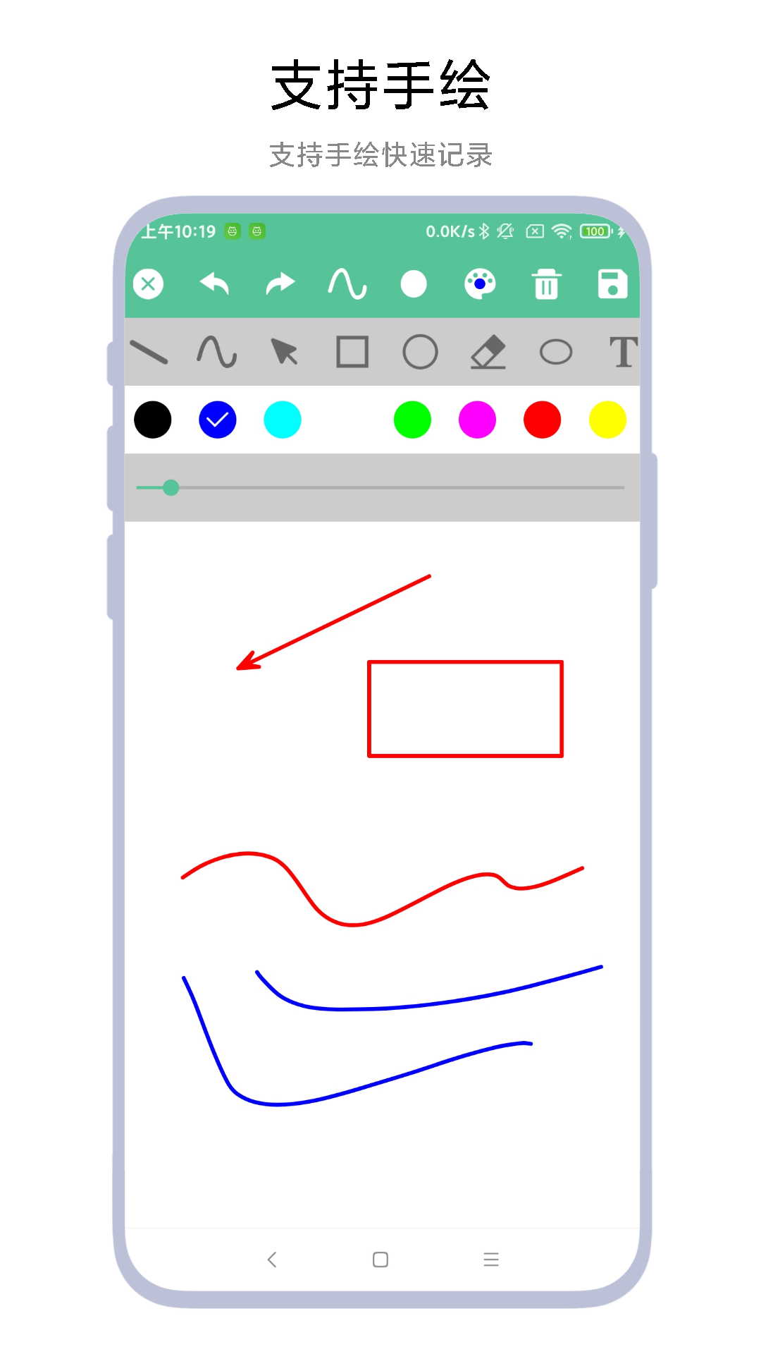 3、提供多色画笔、图形工具与橡皮擦,支持随手绘制草图、流程图或创意涂鸦,满足可视化记录需求。