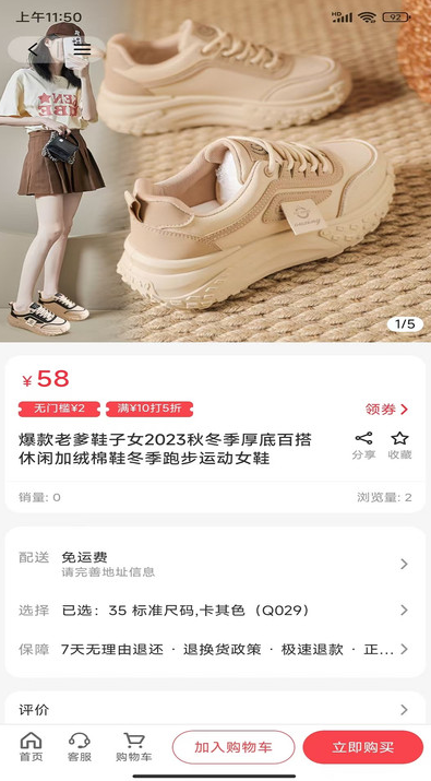 3、喜欢的商品可以及时收藏,并且也可以点击立即购买。