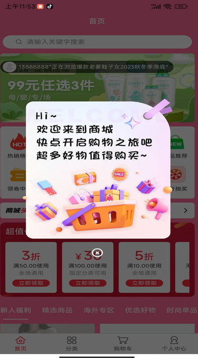 2、优惠券领取流程简洁便捷,用户在购物前可通过平台专门的优惠券专区。