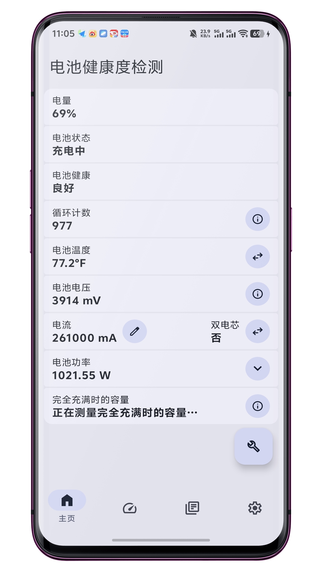 1、首页就可以看到电池检测信息,涵盖的内容很齐全;