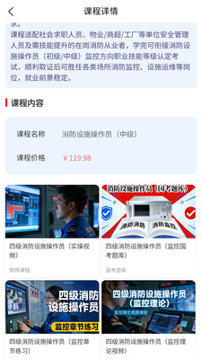 4、热门推荐区域中,提供初级、中级和高级消防设施课程教程,可以轻松观看课程学习操作技巧。