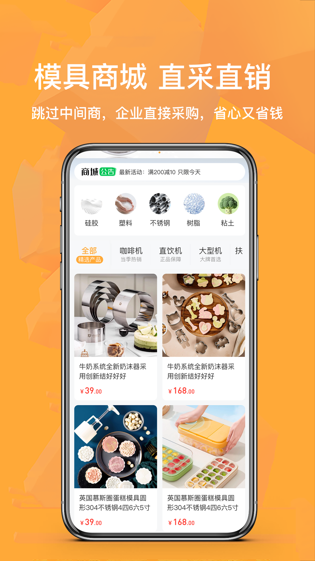 1、软件汇聚模塑行业全链条商品资源,核心涵盖三大品类、生产原料聚氯乙烯、聚丙烯等各类模塑材料、机械设备、维保服务,满足企业生产全流程需求。
