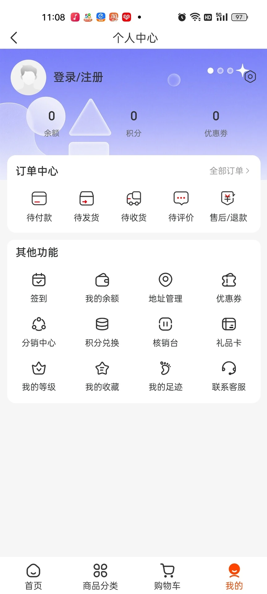 2、进入首页可以看到丰富的功能,随时随地来进行选购。