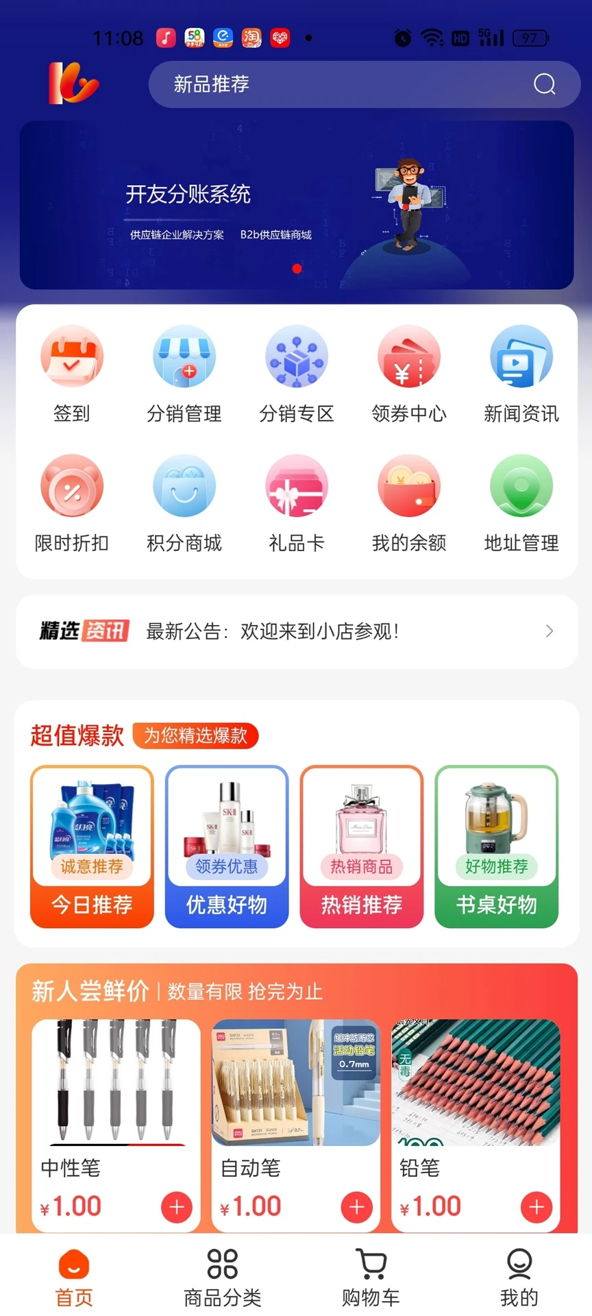 3、提供一键铺货功能,供应商将商品信息同步到淘宝、京东、抖音小店等零售渠道,库存变动实时回写,避免超卖,实现B2B2C全链路库存一盘棋管理。