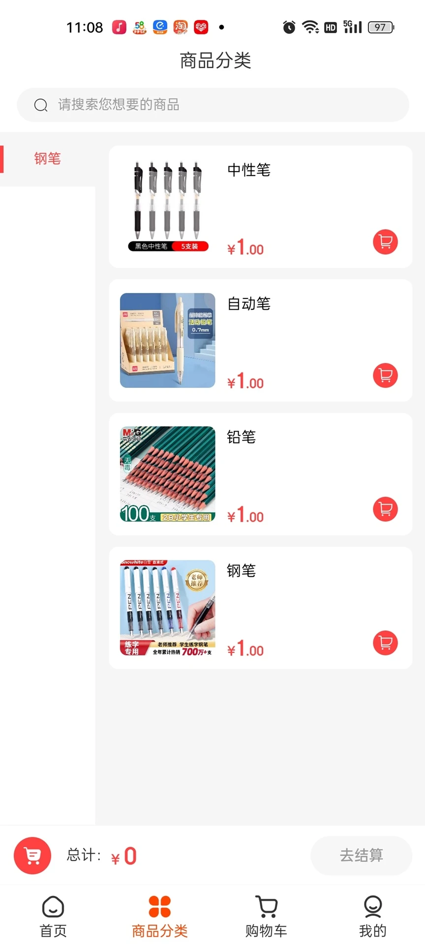 3、进入到【商品分类】,可以看到详细的商品类型并且进行筛选。