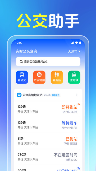 公交乘车路线通app公交乘车路线通与地铁数据打通,换乘方案会同步显示地铁段票价与预计候车时间,实现公交加轨道一张图,全程用时一目了然,软件提供最早末班车视角,可单独查看能赶上最后一班车的规划,加班或夜归人只需设置出发时间,系统即自动剔除已停运线路,在车辆详情页可查看该班次最近七日准点率与舒适度评分,评分由乘客反馈综合算出,让你提前避开经常脱班或拥挤的线路。