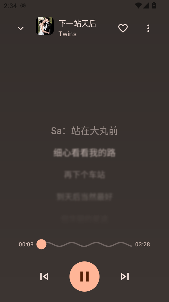 3、在音乐播放中,支持收藏、切歌等操作,还提供了歌词显示。