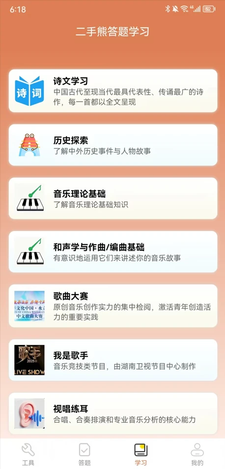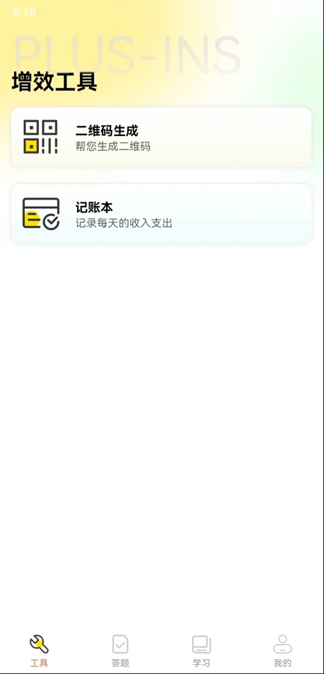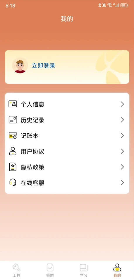 3、打开app即可看到工具板块、答题板块、学习板块、我的板块的功能可以自由使用。