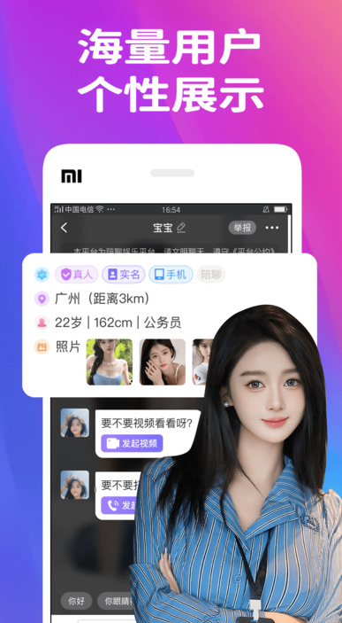 3、视频互动让交友突破文字沟通的局限,增强彼此的信任感与亲切感。