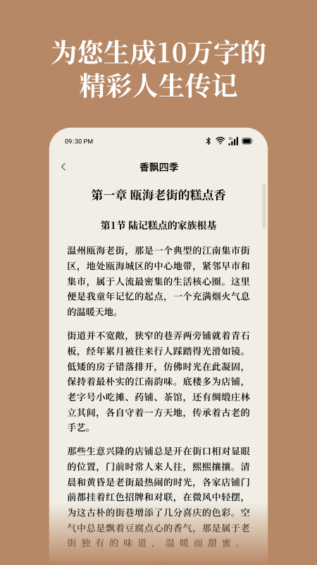 1、 无需写作技巧或事先规划,只需轻松聊天即可完成一部结构完整、内容丰富的个人传记。
