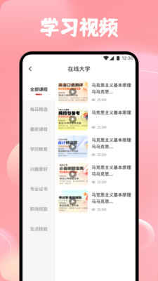 3、全品类视频课程随心学,高清画质搭配流畅播放,支持倍速、回放、离线缓存,充分利用碎片化时间,学习更灵活自由。