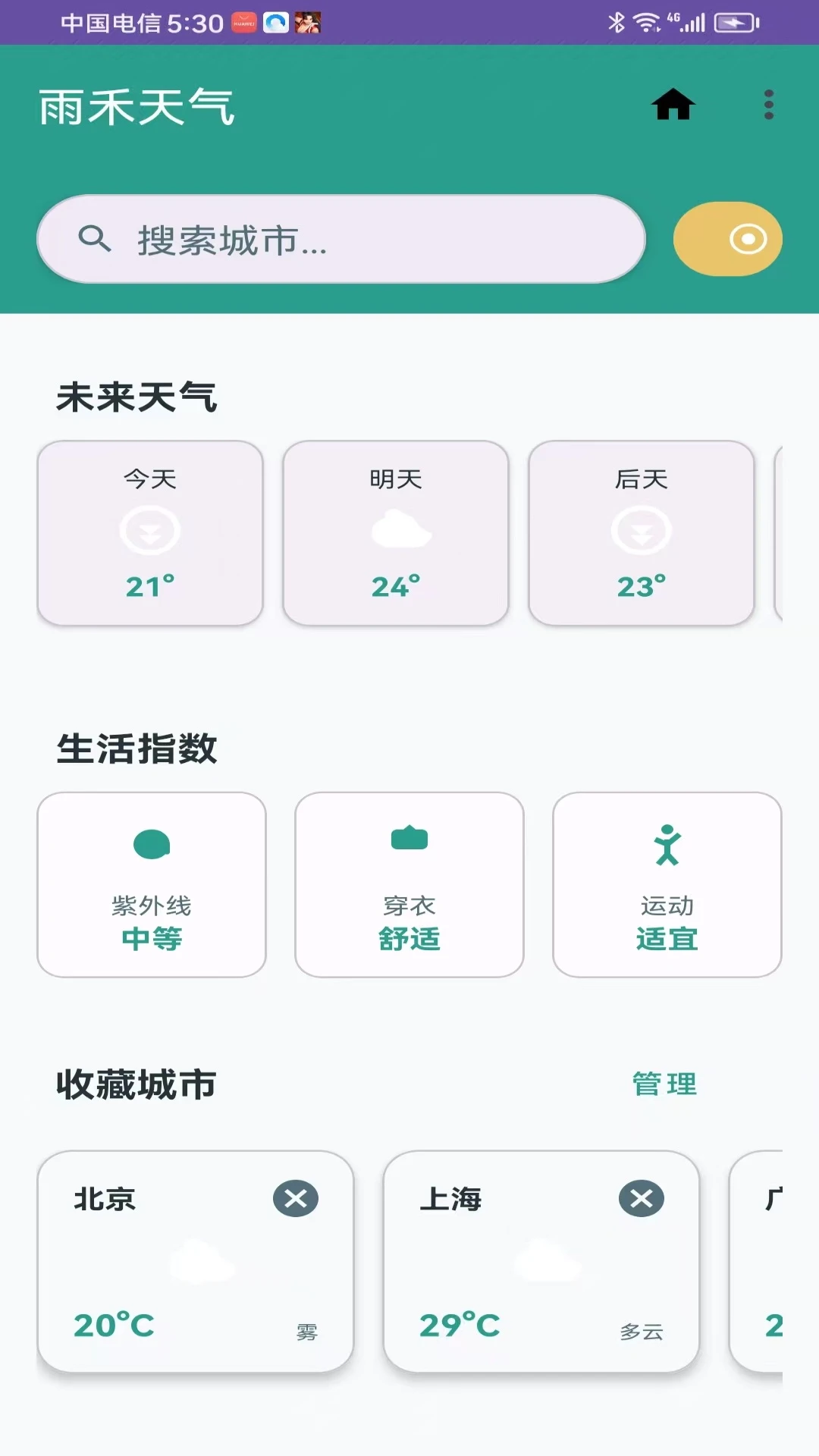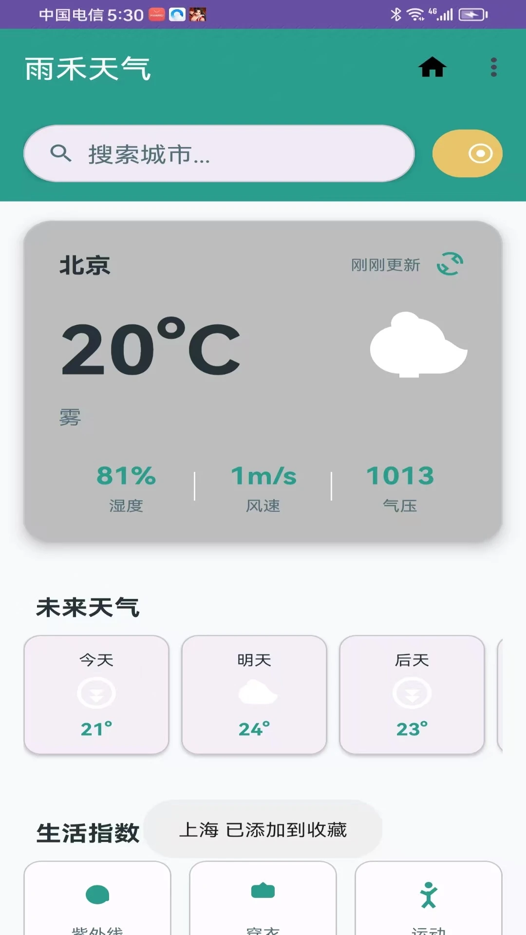 4、输入城市名称,即可快速检索并且显示当地天气情况。