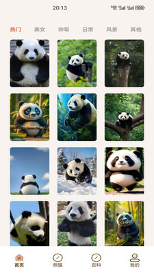 2、探索熊猫百科,打开app即呈现高清壁纸资源,通过细致的壁纸分类可以快速找到喜欢的图案并下载。