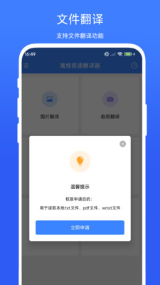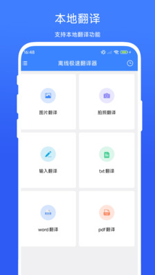 离线极速翻译器app是一款能够精准翻译多种语言的随身翻译助手软件,包含了多种翻译方式任大家选择,用户随时可以打开app轻松完成翻译,图片翻译、拍照翻译、文本翻译以及文档翻译等不同方式供大家选择,在不同的场景下都能满足大家的翻译需求,并且支持离线翻译,让翻译不会受到网络影响,翻译的结果也会保留,用户随时可以查看和核对。