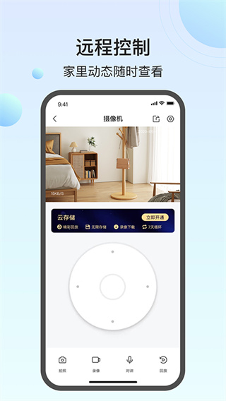 对智能摄像机、门铃、门锁等设备进行连接应用,还可根据相应提示连接后即可在手机中实时监控家里面动态,支持拍照、录像、对话、回放、移动视角等方面功能。
