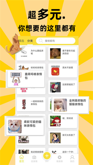 2、进入首页,用户可以看到大量的表情包资源,还支持拍表情,做表情;