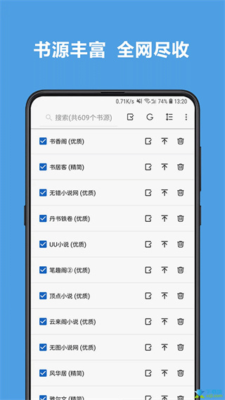 4、自定义自己想要的书源,只要导入书源就能够在各个小说平台进行搜索。