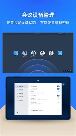 腾讯会议ROOMS控制器是一款配合会议室设备使用的远程控制工具应用,在将软件和设备连接成功之后就可以直接在手机里控制会议设备比如开始会议、调节视频音量或者是管理参会人员等,就像是把原本足以在会议屏幕上面控制的操作搬进手机里面轻松完成也让在开始会议的时候更加方便可以及时调整。