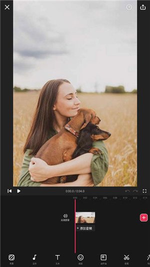 4、素材都选好之后,就会进入编辑界面,底下有一排工具栏,你可以给视频换个背景,或者配上一段应景的音乐。