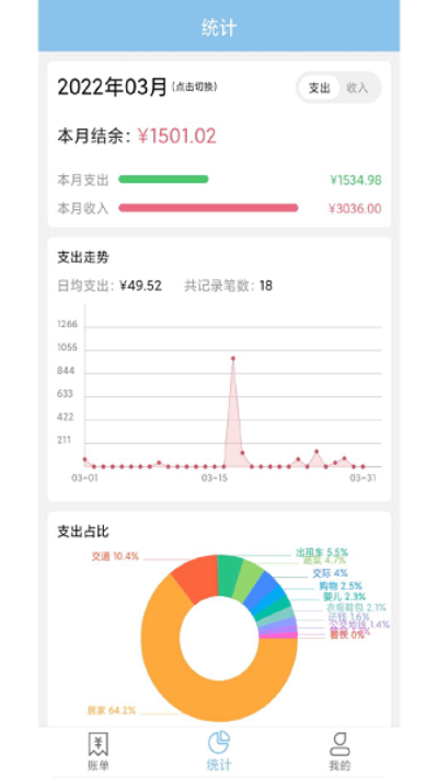 4、图标会根据你的记账来生成走势图表,直观展示金额变化。