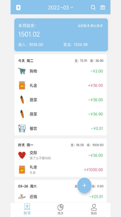 界面布局简洁清晰,所有功能入口直观可见,零基础用户也能快速完成全部记账操作流程。