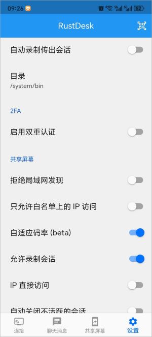RustDesk安卓版是一款非常好用的远程控制软件,无需任何配置,即可实现远程协助、办公,并且采用了TLS1.3端到端加密协议,能够轻松保护用户数据安全。而且,RustDesk也支持跨系统平台,用户可以用手机控制电脑,电脑控制电脑,并且还只支持文件传输、端到端加密、收发文本消息等功能,能够基本能够满足用户日常远程办公,以及协助他人处理电脑的需求。如果担心免费的网络服务不是很稳定,还可以自己安装服务器进行使用,改成自建中继服务,那就非常流畅了,并且为了保证传输的稳定性,RustDesk选择三种画面质量模式,用户可自定义选择。