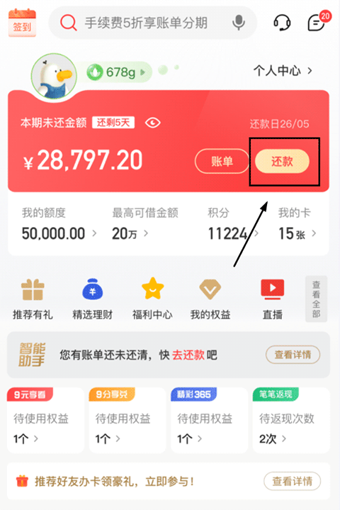 信用卡的核心操作都集中于此,查账单、还款、申请提额、办理分期、在线申卡,所有服务尽在掌握。