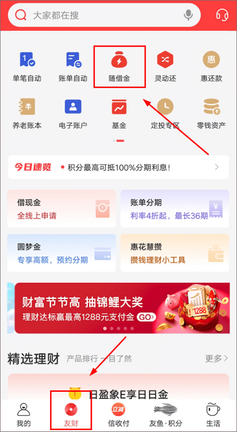 办理路径:动卡空间-友财-随借金