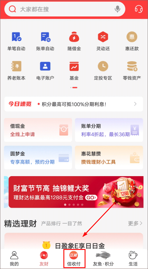 「信收付」用扫码功能支付能享受到不少优惠,并且支持一键将消费转为分期付款。