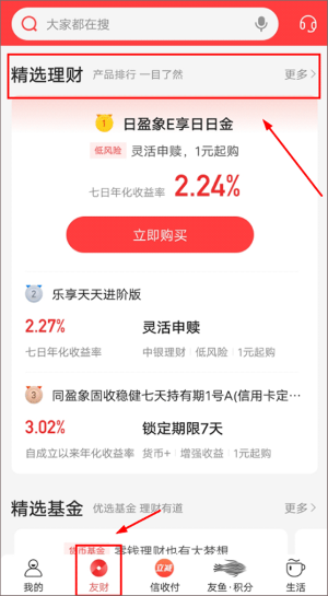 办理路径:动卡空间-友财-精选理财